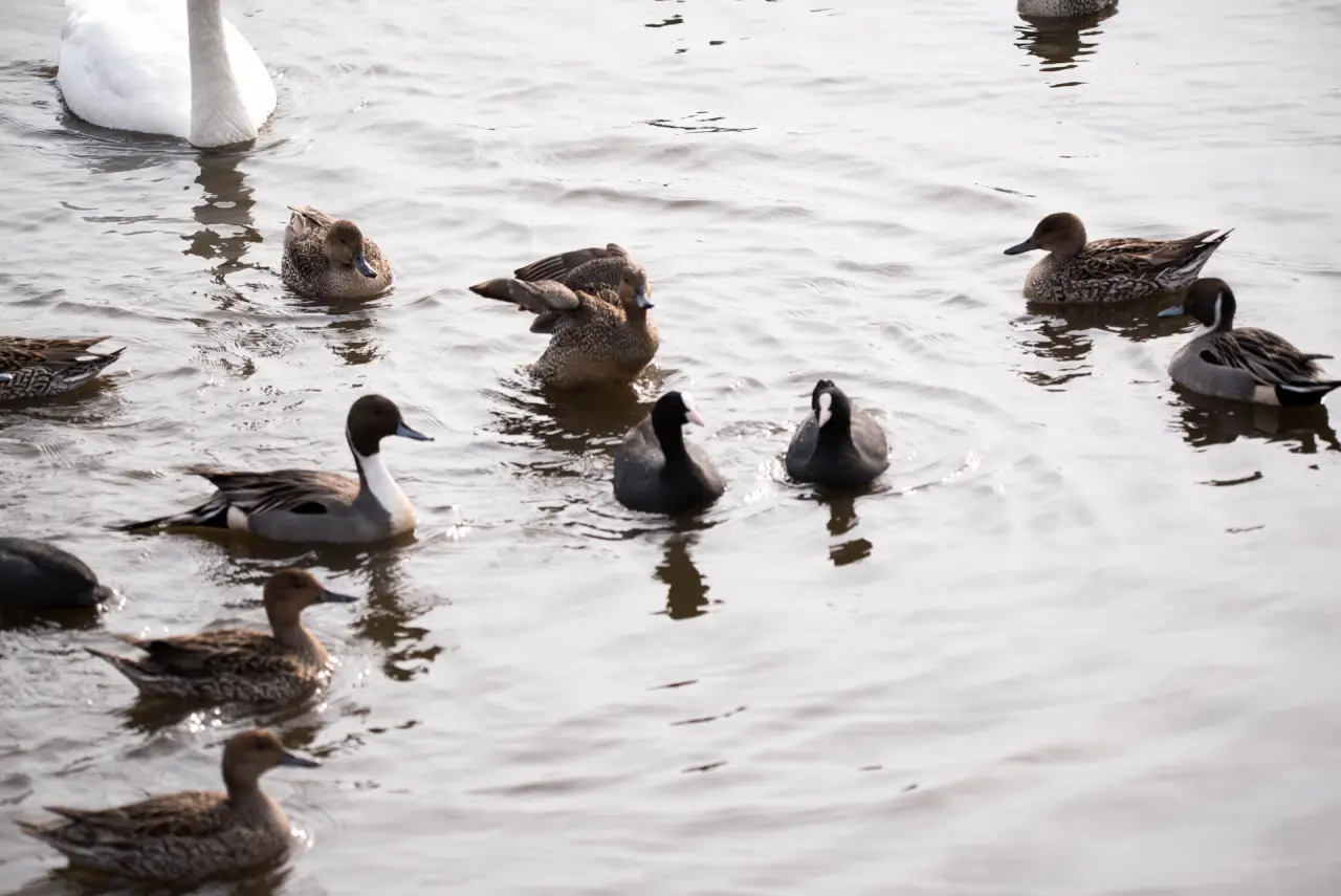 群れで暮らすカモたちは、自然と“見張り役”が生まれるようで、よく周りを見ています。